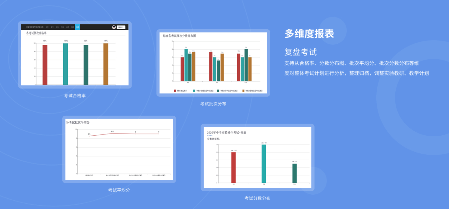 教師針對(duì)實(shí)驗(yàn)操作考試進(jìn)行智能化閱卷仲裁,多種可視化報(bào)表進(jìn)行數(shù)據(jù)分析,考試復(fù)盤